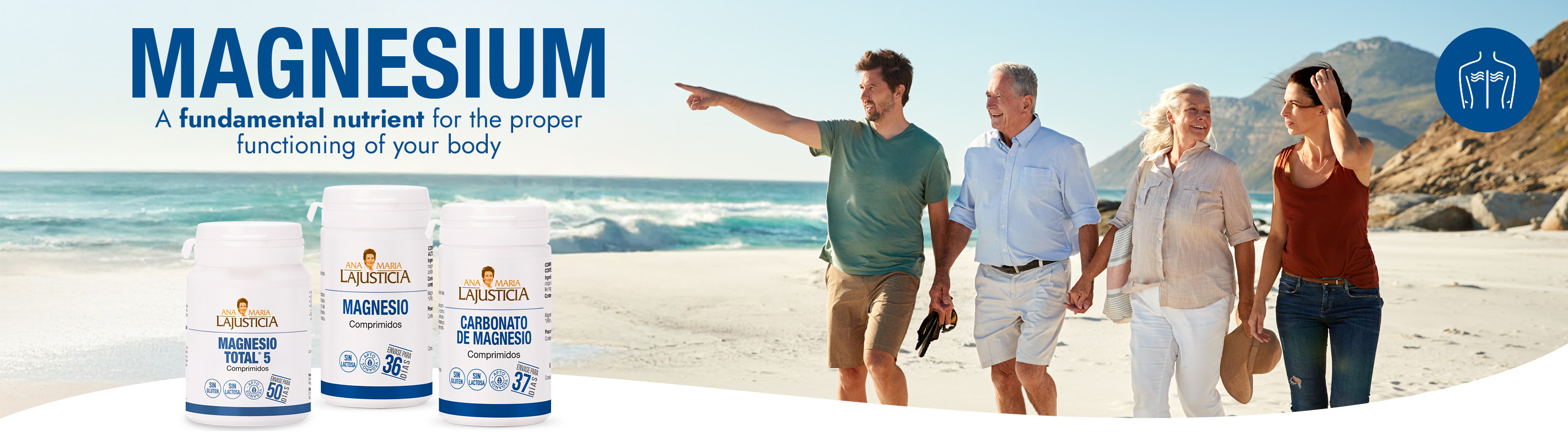 República Dominicana MAGNESIUM TOTAL 5 (100 tablets) ANA MARIA LAJUSTICIA EAN 8436000686814 Magnesium Total 5 – 100 Tablets. A blend of 5 magnesium sources. Reduces tiredness and fatigue and improves the functioning of the nervous and musculoskeletal systems. With a neutral laxative effect. View