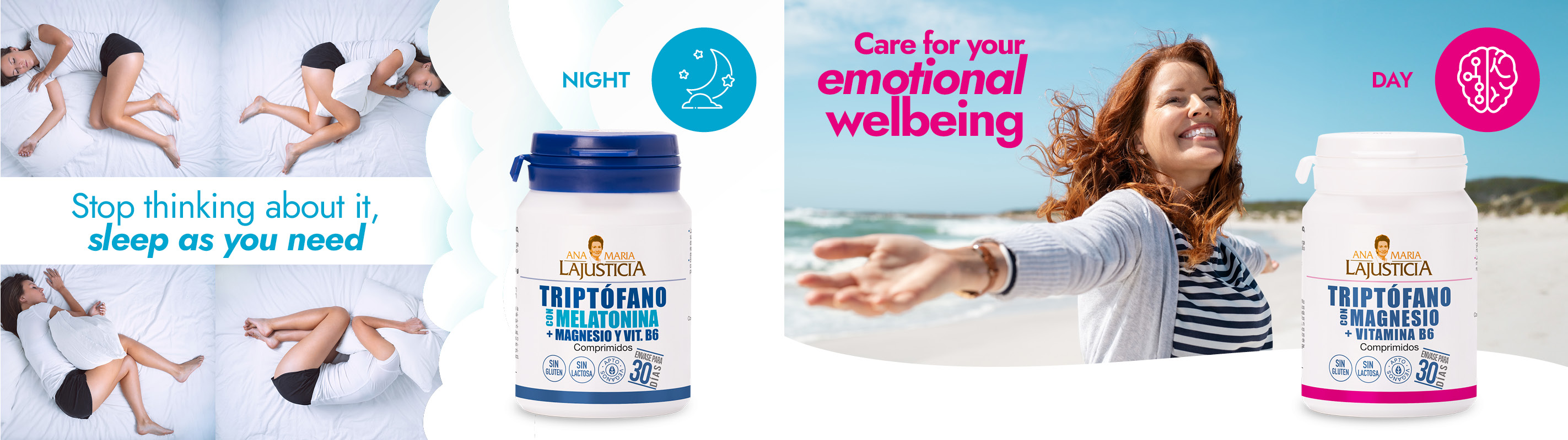 República Dominicana TRYPTOPHAN WITH MAGNESIUM + VITAMIN B6 (60 tablets) ANA MARIA LAJUSTICIA EAN 8436000683233 Tryptophan with Magnesium + Vitamin B6 – 60 Tablets. Reduces anxiety, fatigue and regulates the internal clock. View